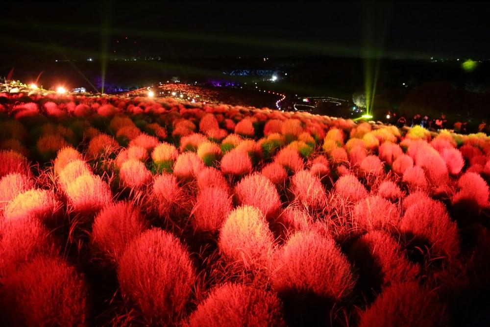 10年目となるコキアライトアップ。観覧料金1,000円が入園料金とは別に必要でしが、音楽に合わせた光の演出が素晴らしくて感動しました。