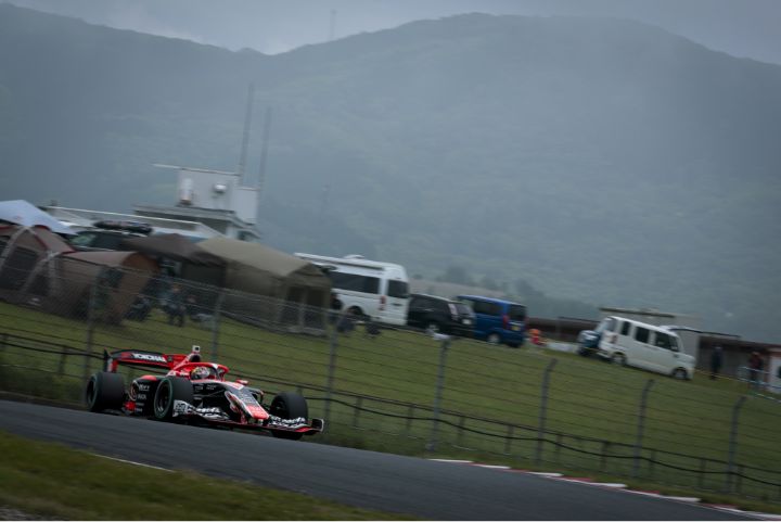 熊本県と大分県にまたがる阿蘇山の中腹に位置するオートポリス。年間を通して雨が多く、雨が降った後には必ずといっていいほど霧がでることで有名なサーキット。そんなオートポリスで開催された本大会はまたしても雨に悩まされることになります。特にウェット路面にナーバスなスーパーフォーミュラ。数ミリの雨が降るだけでドライバーから口々に氷の上を走っているよう…という声が漏れるほど。公式予選が予定されていた土曜日は強い雨に見舞われ、その後に発生した濃霧で全ての走行スケジュールがキャンセル。日曜日にセットアップのための走行時間を兼ねた計時予選が行われることになってしまいます。