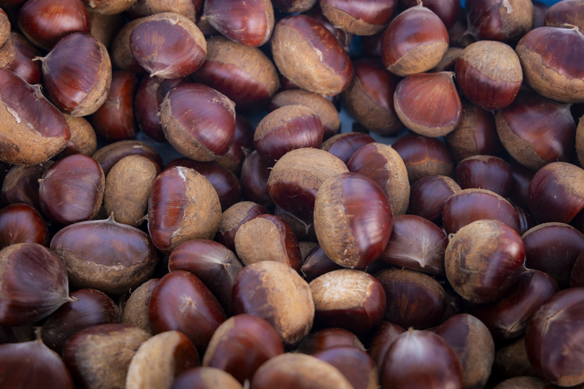 晩生栗は品質が高く貯蔵性にも優れているのが特徴。代表品種の石鎚は赤茶色でツヤがあり、やや大粒で甘みがしっかり。煮崩れしにくいため、渋皮煮に向いています。そして栗の季節の最後を締めくくるのが岸根。果実の先端に膨らみと薄毛があるのが特徴。大粒で芳醇な香りと強い甘みを持ち、加工にぴったりな品種です。