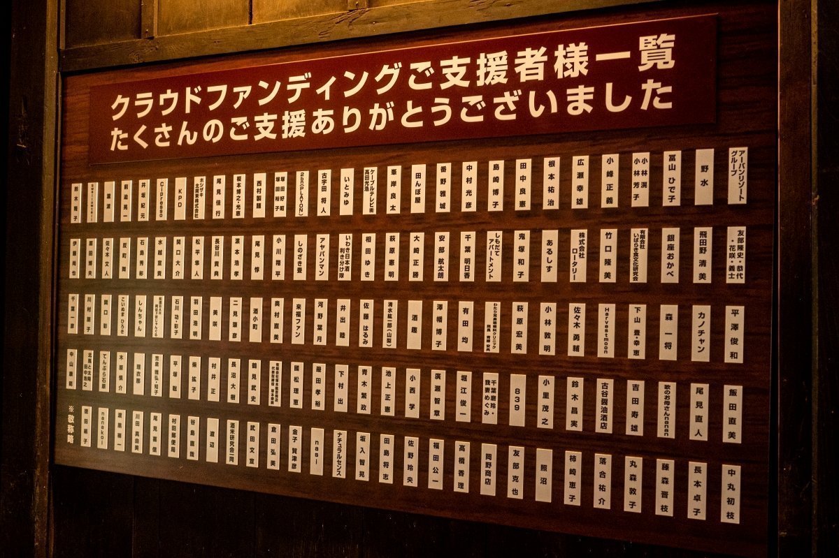 リターン品は、お酒の飲み比べセットなど酒造ならではのものをはじめ、オープニングイベントの鏡開きへの招待も。「最初はなかなか反応がなくて焦りましたが、近所の方が『やり方わからないから』と直接支援金を持ってきてくれたり、『私も苗字が尾見なので縁を感じました』とメッセージつきで応援してくれる方がいたり、みなさまのおかげで目標金額を達成することができました」と藤村さん。
