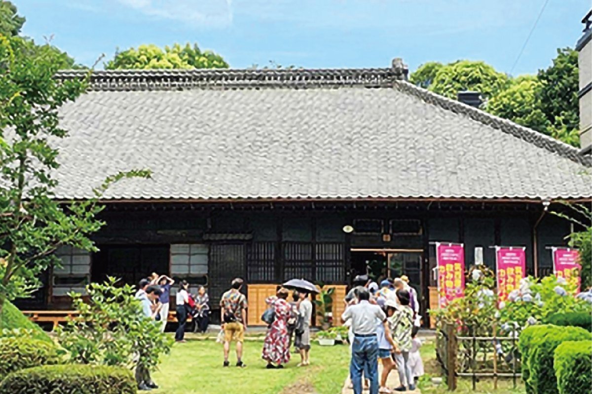 来福酒造の創業は享保元(1716)年。江戸幕府に酒を献上するため良水の地を求めて筑波山麓にたどり着いた近江商人を、吉島村(現在の筑西市村田)一帯の地主である尾見家が受け入れたことがはじまりでした。尾見家の屋敷は皇族が立ち寄られたという記録も残るほど立派な建物で、およそ180年前に建てられた主屋はいまもその姿を残し、薬医門や神輿蔵とともに「旧尾見家住宅」として国の登録有形文化財に指定されています。しかし現在尾見家には後継ぎがなく、貴重な古民家も手入れの行き届かない状態になっていました。