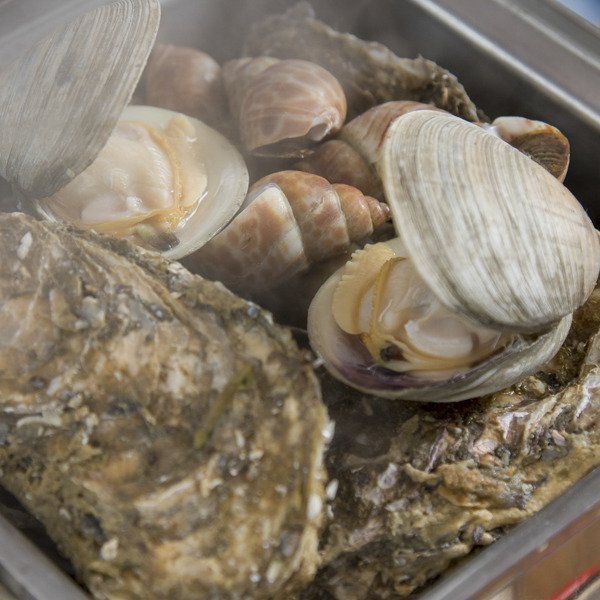 大洗で話題のグルメスポットが♪牡蠣の他にも、ハマグリ、ホタテなど好きな魚介を自分で選んで食べられます。「何がいいか迷っちゃう」という人には、お店オススメの貝セットも用意♪かき小屋は、鍋で蒸し焼きにする「がんがん焼」がメインスタイル。皆さんで心ゆくまで味わってください!