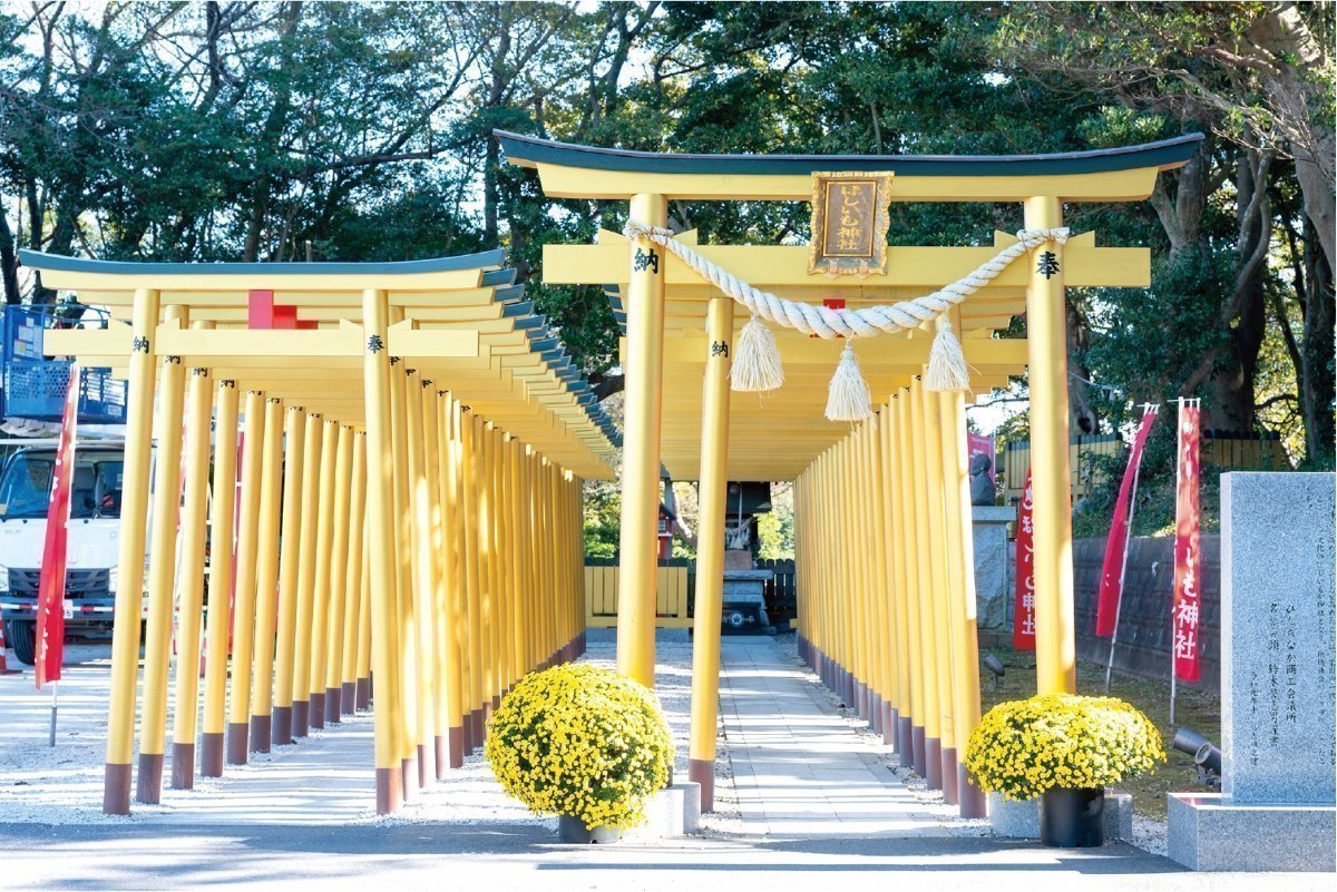 令和元年に誕生したほしいも神社は、「ほしいものがすべて手に入りますように」という願いを込めた新しい神社です。アートディレクター・佐藤卓氏と協力し、堀出神社の境内に設計・建設されました。社へと続く黄金の鳥居が並ぶ光景は圧巻。ぜひ参拝して、2026年を素敵な一年にしましょう!