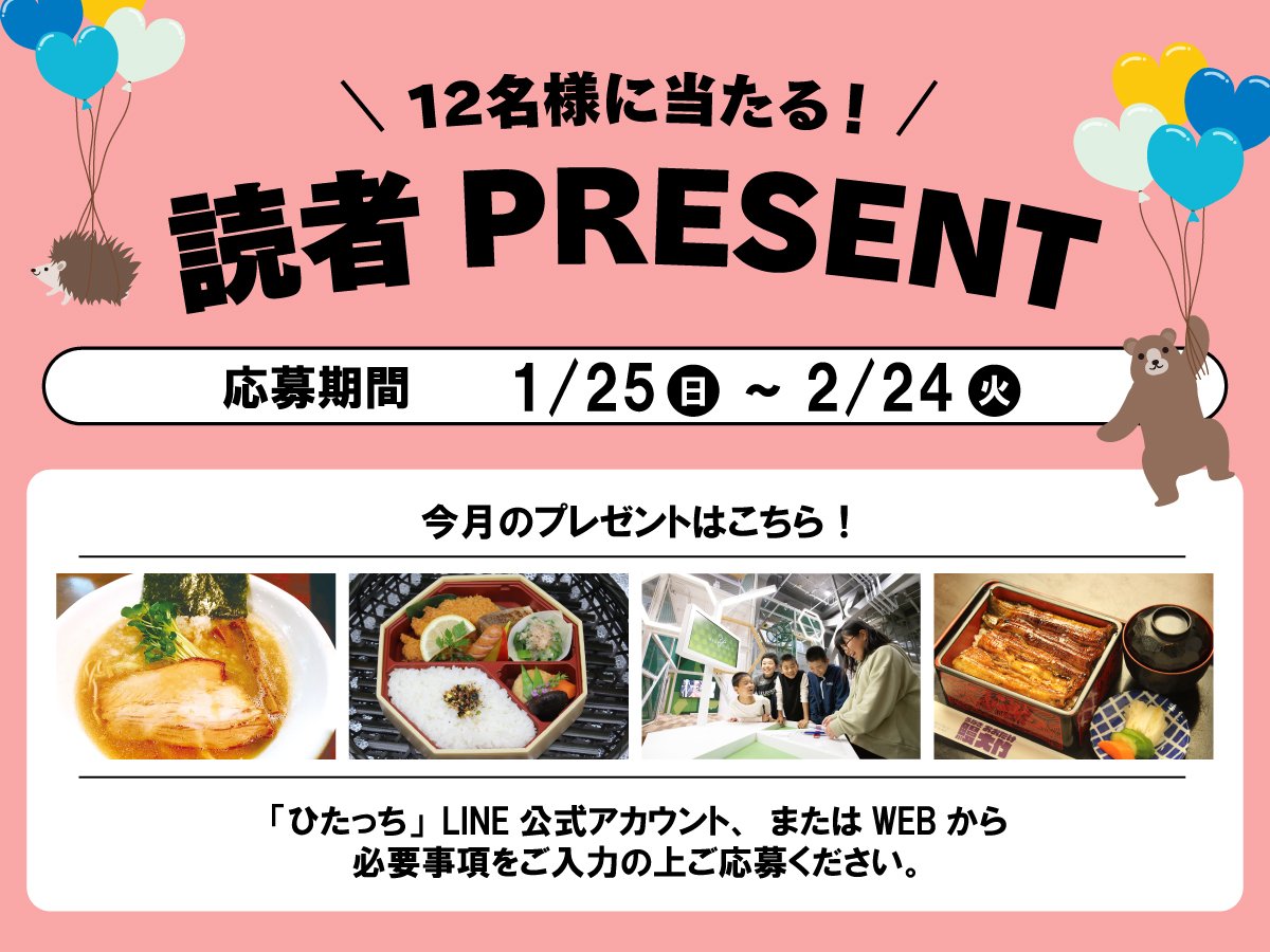 さらに、「月刊ひたっち2月号(vol.195)」では、今回ご紹介したグルメが当たる、読者プレゼントを実施中!