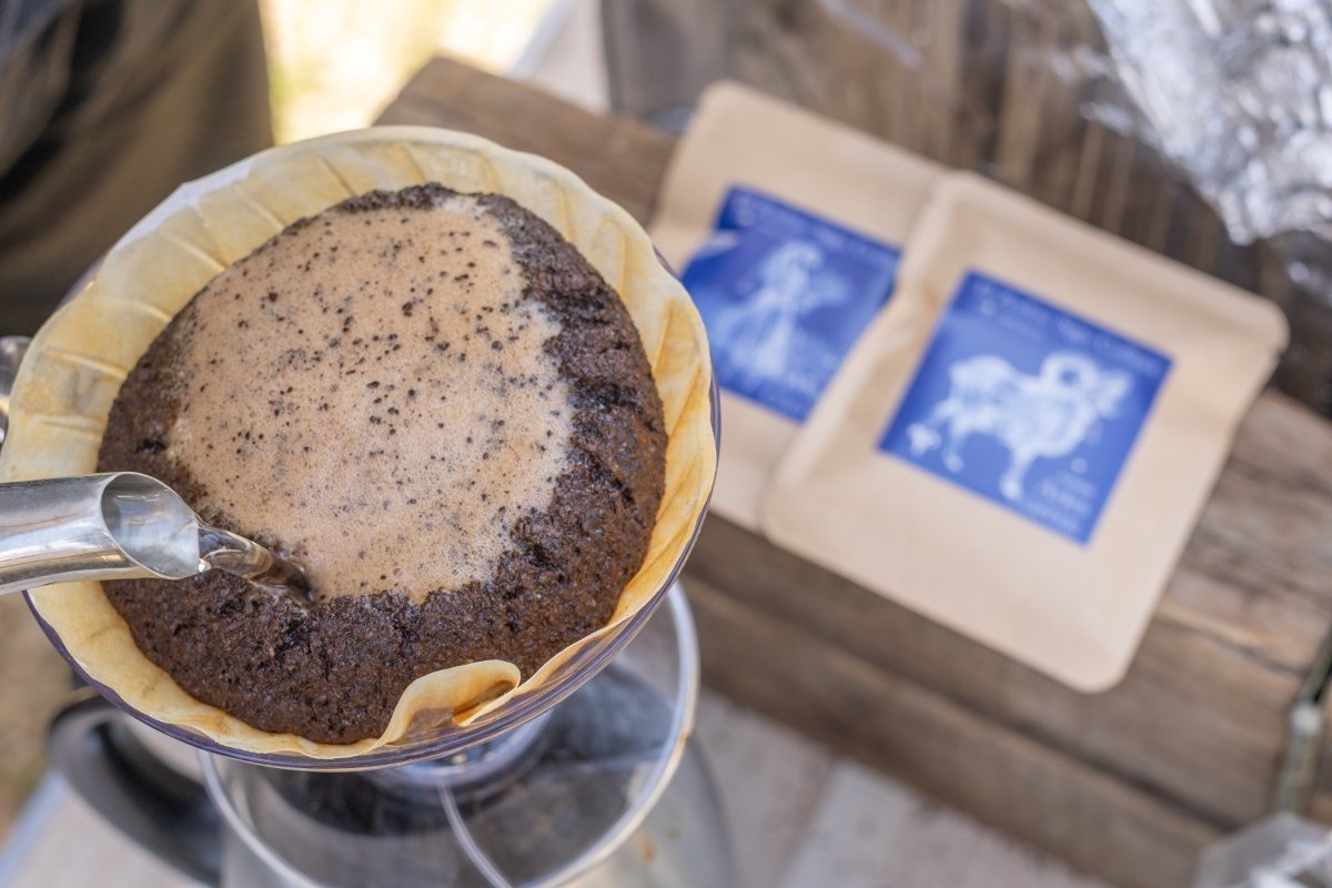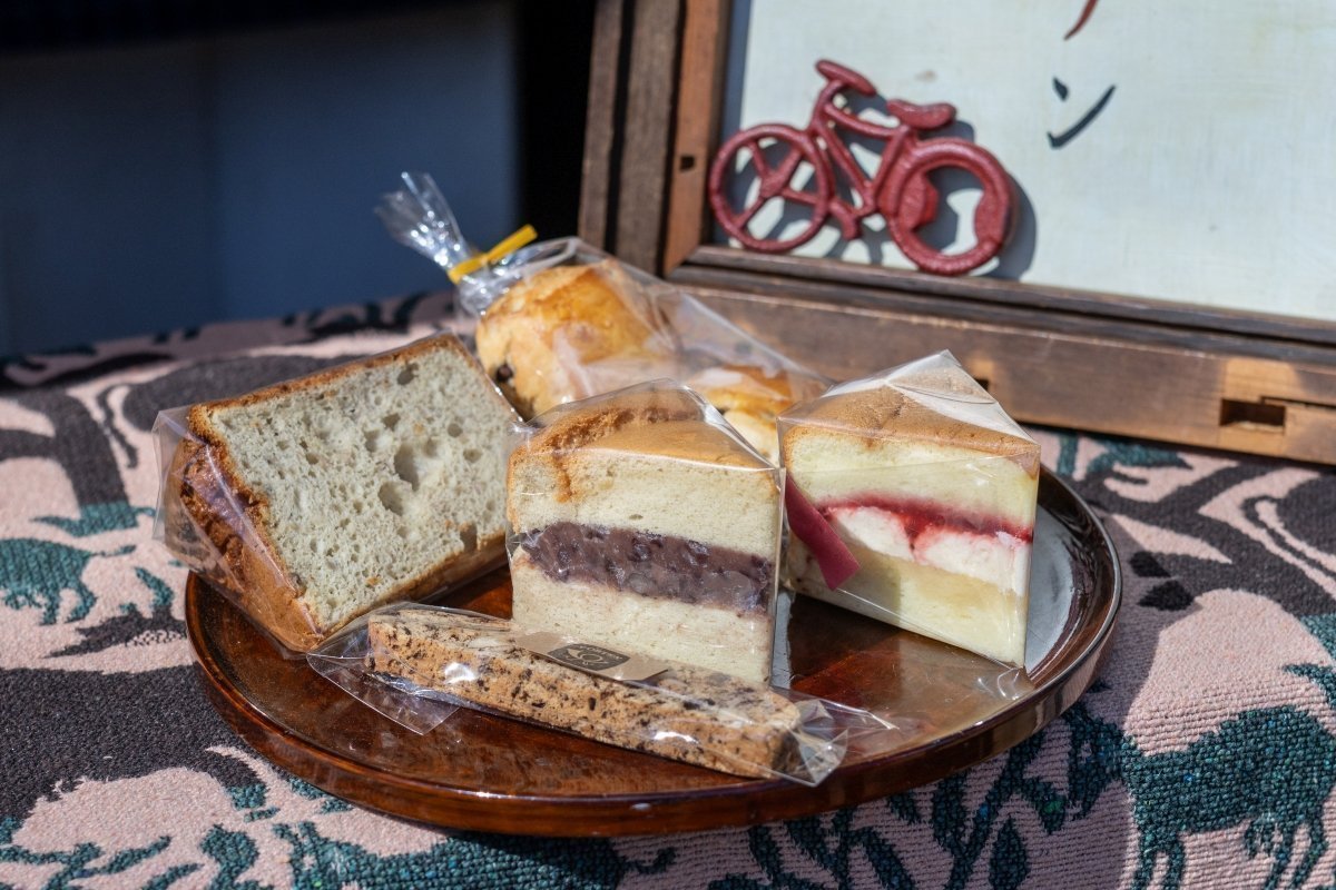 自家焙煎コーヒー、つくばベリーソーダ、豆と野菜のカレー、きび糖スコーン、バナナシフォンケーキなど