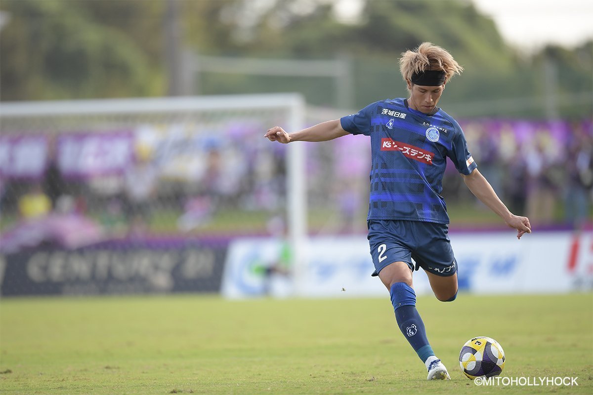 今季、栃木SCから水戸ホーリーホックに完全移籍で加入した大森渚生選手。左足から繰り出される高精度のキックを武器に、セットプレーのキッカーも務める左サイドバックです。