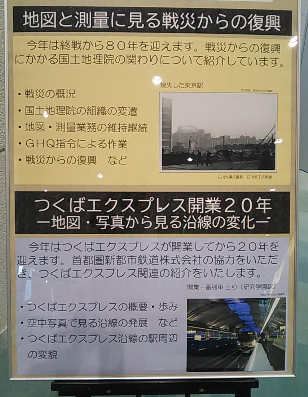 先月9月21日まで開催の2件の企画展を見学しました。今年は何かと節目の年のようで、2件の企画展とも節目を記念したもの。1つは戦後80年を記念した「地図と測量に見る戦災からの復興」、もう1つは「つくばエクスプレス開業20年-地図・写真から見る沿線の変化-」。戦後80年記念の展示では、国土地理院の前身であり、戦前・戦中、国内外の測量と地図作成を担っていた陸地測量部(旧陸軍参謀本部外局)の活動と、終戦に際しての地図遺産継承の状況が興味深いです。特に、終戦まで地図は軍事機密等の扱いで、戦争中には国土防衛上の地図改描(軍施設、電信電話局、気象台・測候所、造船所、各種インフラ等の地図上からの削除)や、要塞地帯の地形表現の空白化(等高線削除)等の書き換えが行われていたのは、初めて知るものでした。また終戦時、政府や軍の重要書類の焼却処分の通達により、営々集積して来た地図情報も滅失の危機に遭ったということも初めて知りました。しかし、ひとりの参謀の「復興のため将来必要となる地図まで焼却することはない」という考えにより、作戦用地図を除き、多くの測量成果や地図類が遺産として次代に継承されたことは、戦後日本にとって、実に幸いなことだったと感銘を受けました。もう1つのTX開業20年記念の展示では、TX沿線(駅周辺)の約20年前と現在の写真・地図が比較展示されており、TX開通により沿線の景観等がだいぶ変化したものだと、改めて思いました。またTX車両のヘッドマーク類の展示も興味深かったです。