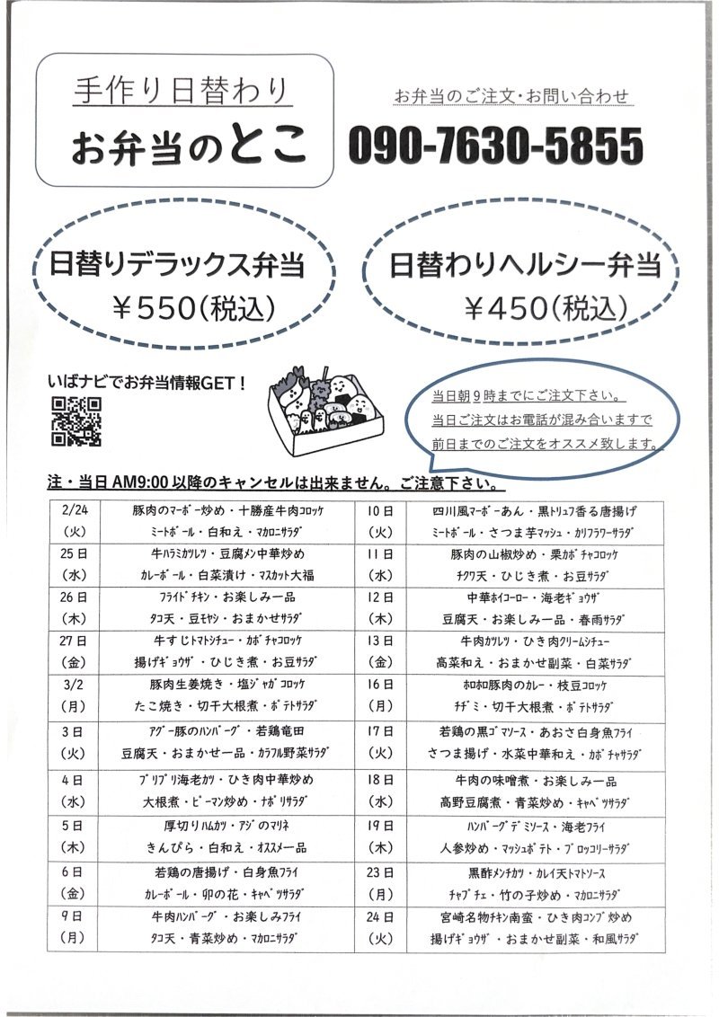 1/24~3/24までの「手作り日替わり弁当」