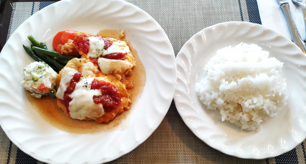 前回いただいた「チキンのトマトチーズ焼き」がおいしかったので、今回も同じものをいただきました。サラダ・スープ・メインの付け合わせなど、使われている食材に変化はなく、前回同様でした。メインの料理はごはんとも合い、おすすめしたい一品です。お値段も変わらず、1,610円(税込)でした。