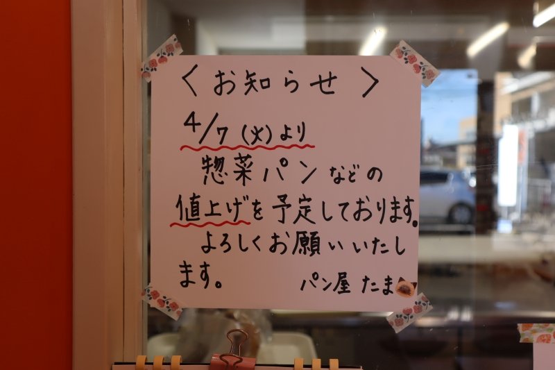 惣菜パンなどの値上げのお知らせ 4/7(火)~