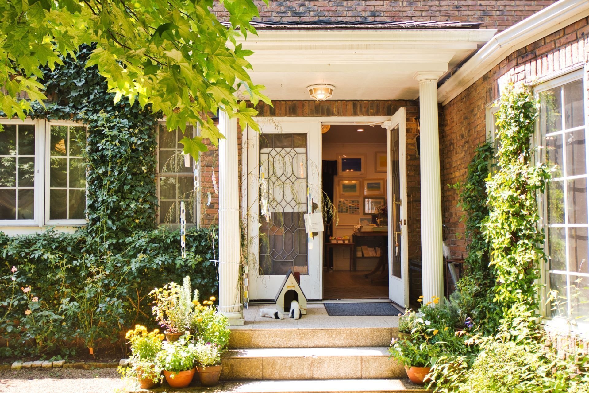 白を基調としたシンプルでナチュラルな建物に、豊かな緑が映える落ち着いた雰囲気。木々や花々がやさしく迎えてくれる外観は、街中にいながら自然に包まれているような開放感を感じさせます。