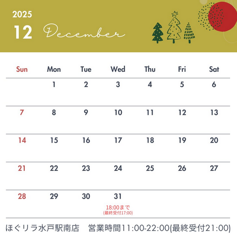 【12月営業時間のご案内】