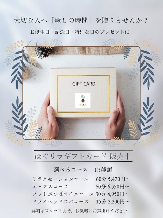 「ほぐリラ」のギフトカードはがんばっているあの方へ、