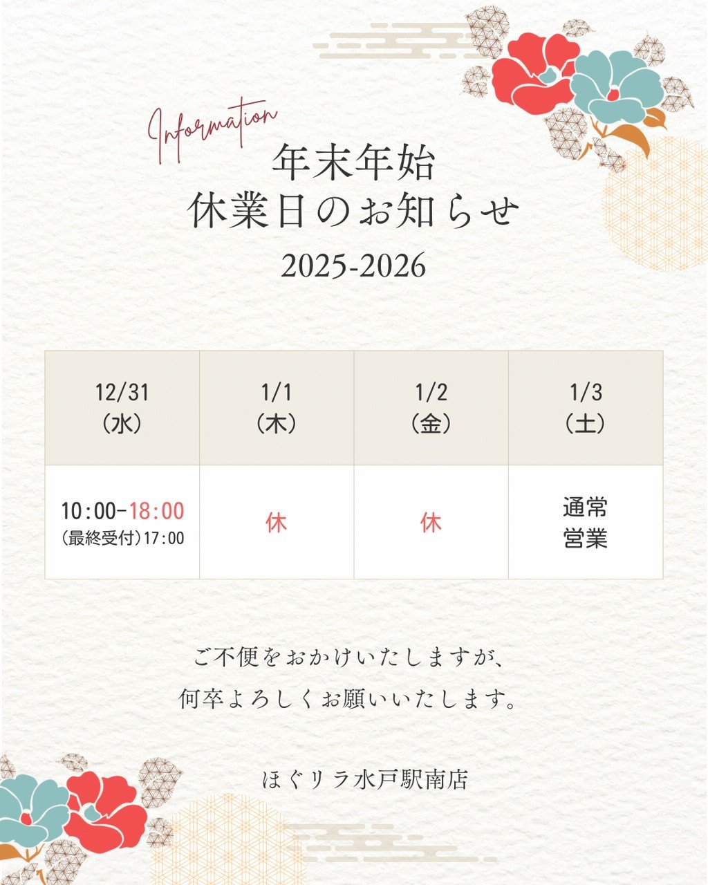 【年末年始のご案内】