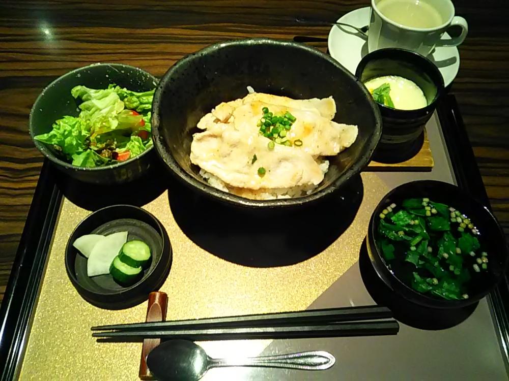 年末も近い先月中旬の平日昼、ランチで立ち寄ろうとしたデイズタウン内の「アジアンダイニング門星」が閉店・店変わりをしていたのを知り、代わりに、同じフロアにあるこちらのお店を再訪しました。本日の限定として「塩だれ豚肉丼」セットがあったので、クーポンのホットコーヒーとともに注文。メインの塩だれ豚肉丼は、塩だれで味付けした豚バラスライス3枚がご飯に載ったもの。トッピングの薬味ネギと軽く振った黒胡椒との相性も良く美味い(ただ、ご飯量は少なめ)。これに吸物(あられ/青菜)、香物(キュウリ浅漬/カブ酢漬)、サラダ小鉢(サニーレタス/パプリカ/赤カブ/和風ドレ)、それにいつもの茶碗蒸し(小海老/鶏肉/エノキ/三ッ葉/柚子皮片)が付きます。〆のホットコーヒーで暫し寛ぎました。