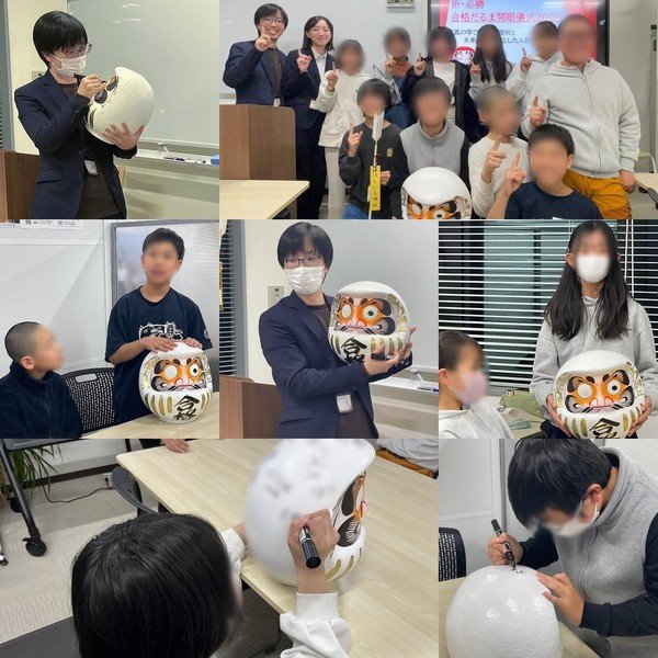 だるまに目を入れた後、入試に向けての意気込みを発表してもらいました🔥