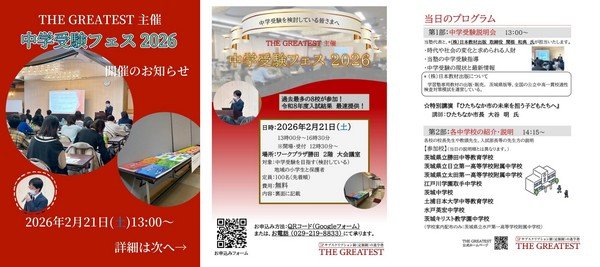 2026年2月21日、ワークプラザ勝田にて「THE GREATEST主催 中学受験フェス 2026」 を開催いたします。
