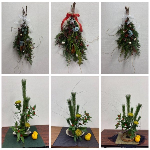 森林公園でのお花の教室、クリスマススワッグとお正月花、同じ日に一緒にやっちゃいました!