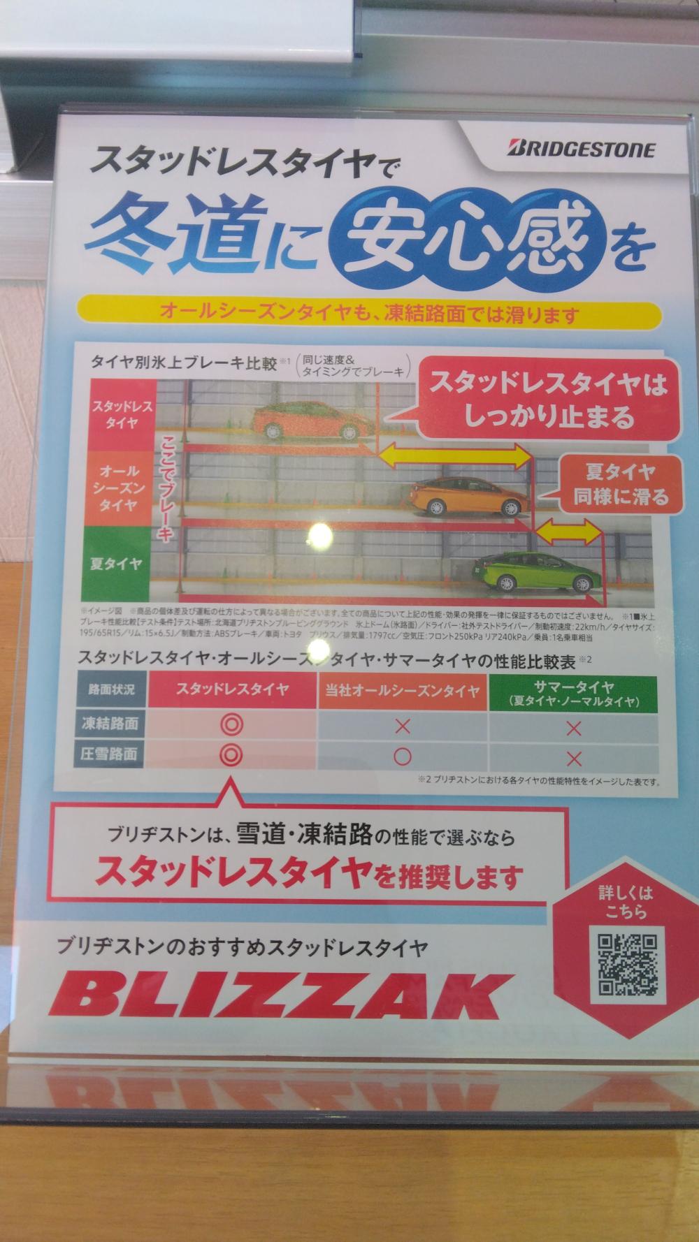 この日は洗車と給油で訪問。 待合室には、スタッドレスタイヤの案内ポップがありました。 やはり国産、特にブリジストン製のスタッドレスタイヤは信頼感があり、安心して走れますね。