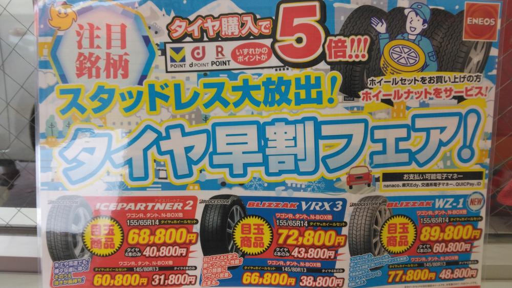 この日は点検で訪問。 いろいろな点検をしてくれ、異常なしとのことでした。 点検中、サービスルームの中で待っていると、冬タイヤの案内チラシが。 もうそんな時期なんですね。