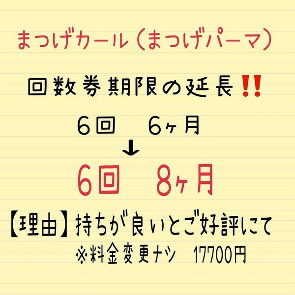 まつ毛カール(まつ毛パーマ)の回数券期限ですが回数は変えずに有効期限を延長致します!!
