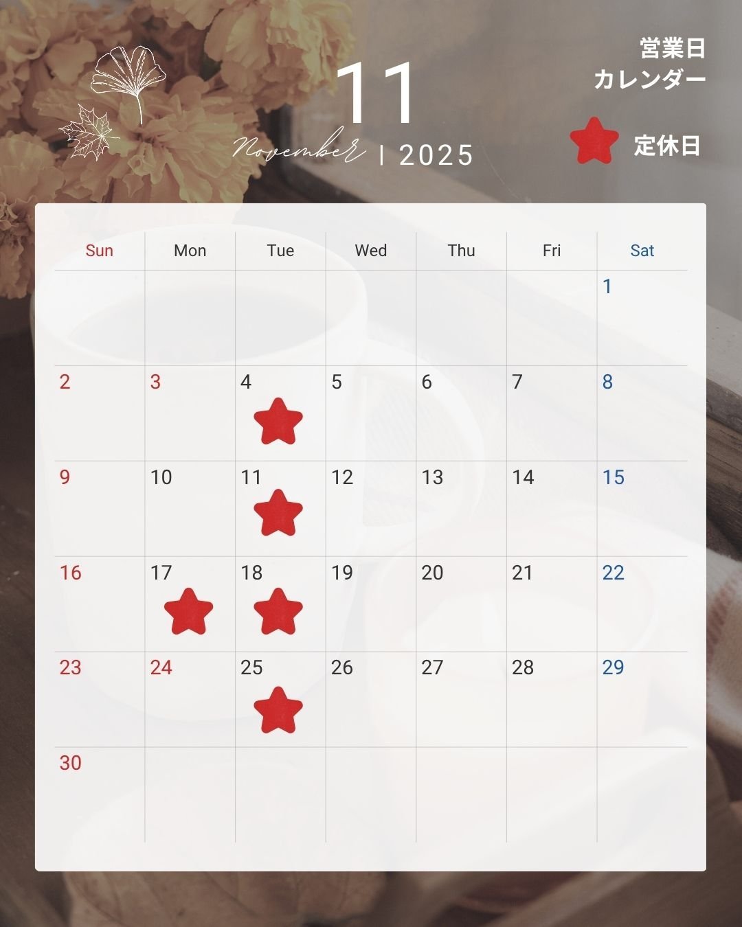 11月のお休みのお知らせ