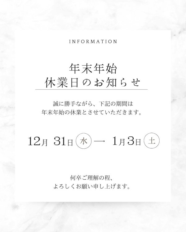 おかげさまで今年も無事に営業を終えることができ、心より感謝しております。