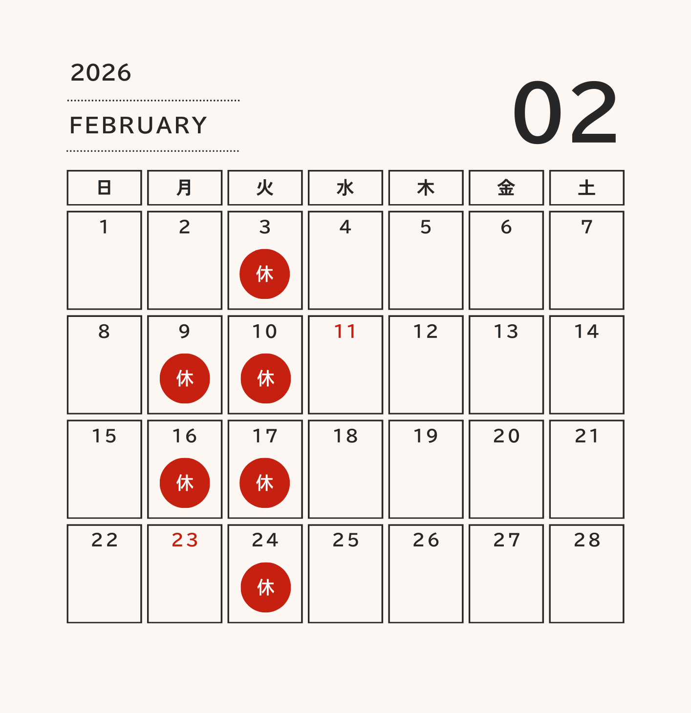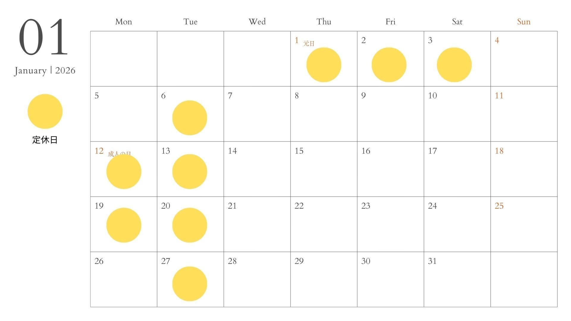 ご予約の際は、定休日をご確認のうえ、ご連絡いただけますと幸いです。