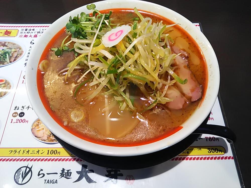 以前は「めんや暁」、次いで「濃厚無双味噌ラーメン味噌乃マルショウ下妻店」となった後、再び店変わりしたところ。年の暮れも近い日曜昼に初訪問です。「味噌乃マルショウ」時代の店内レイアウトを引き継いでいる模様で、結構お客が入っています。まだ開店祝いの花篭が飾ってあるカウンター席に着き、らー麺・ざる中華・まぜそばの中から「ねぎらー麺(しお)」を注文。メニューの説明によれば「らー麺」は魚介出汁に濃厚豚骨や吊り窯叉焼と言ったこだわり食材を詰め込んでいるとか。味は醤油か塩のみ。10分程で「らー麺」到来。一見するとスープは醤油ベースかと見間違えるように黄土~茶色ですが、実際のところは塩スープ。ツルモチッとした中細麺が浸っており、麺上にはピリ辛油を絡めた細切りネギとカイワレ、それにナルト1枚がトッピングされており、傍らには吊り窯叉焼である約3mm厚の豚ロース叉焼1枚と約5mm厚の豚バラ叉焼1枚が添えられています。節系のざらつくスープは魚介と豚骨の出汁がうまく融合しており、とても美味。あっと言う間に完食となりました。