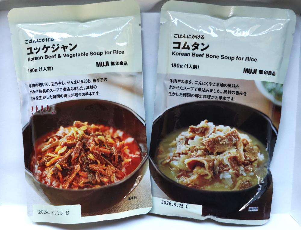 ごはんにかけるシリーズの中に、4種類の韓国料理があり、その中から「ユッケジャン」と「コムタン」を購入しました。韓国料理に興味があるので、食べるのが楽しみです。 ほかの2種類は、「サムゲタン」と「スンドゥブチゲ」で、次回試してみたいと思います。