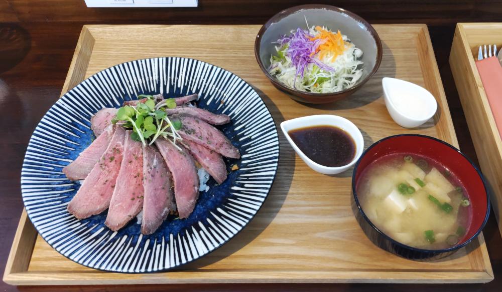 「特性黒カレー」(1,000円)は甘口と表記があったので、「ローストビーフ丼」をいただきました。ローストビーフはやや厚めにカットされたものが多く、最初は冷たさを感じましたが、ご飯と一緒にたくさんのローストビーフを食べることができ、満足の一品でした。(1,500円)