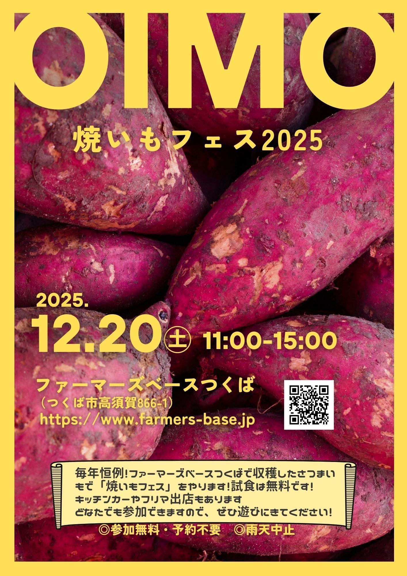 つくば市の「FARMER’S BASE TSUKUBA」で、毎年人気の焼いもフェスが開催されます。