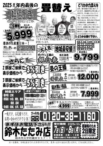 昭和22年から四代続く老舗たたみ店!80年の信頼と実績!家族みんなで頑張って営業しています!