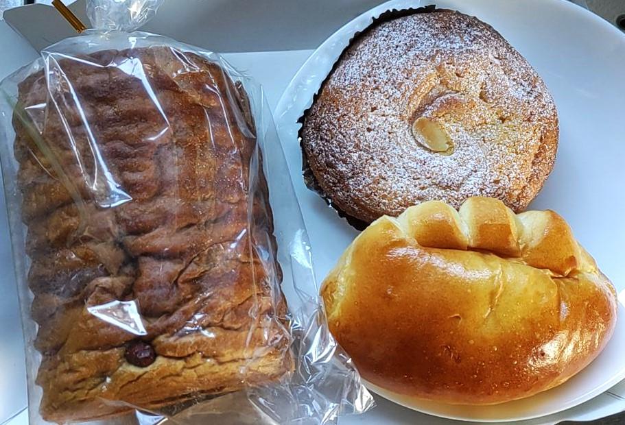 「丸太ブレッド・黒糖大納言ハーフ」「カスタードダマンド」「ふわとろクリームパン」の3点を購入しました。 丸太ブレッドは、黒糖生地の中に大納言が入っているので、小豆が好きな方におすすめです。(340円) カスタードダマンド(230円)とクリームパン(210円)は、パン生地に違いはありますが、どちらも中にカスタードクリームが入っています。 どのパンもおいしくいただきました。