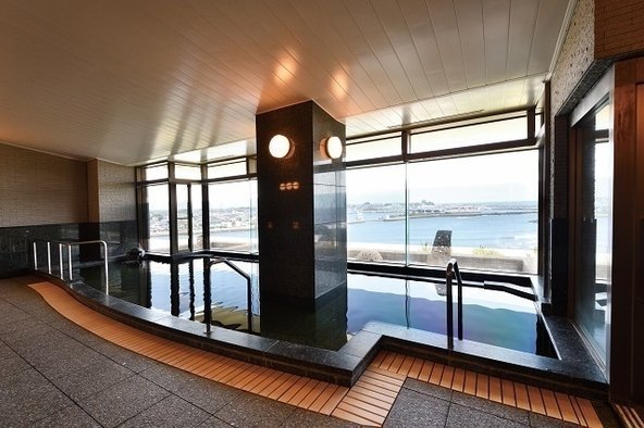 檜を使用した木の温もり溢れる大浴場。 木の香りも清々しい檜と眼前に広がる太平洋も相まって、心の疲れを洗い流します。 木の香りと波の音で至極のひとときをお過ごしください。