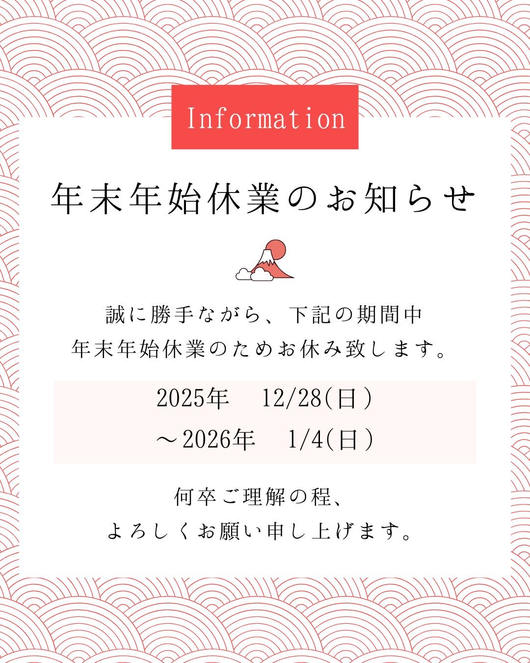 ◆12月28日(月)~1月6日(水)までお休みをいただきます。