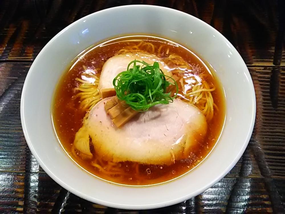 11月初旬の平日昼に久しぶりに再訪すると「活龍 竹園店」が店変わりして「中華そば ビート」となっていました。なんでも活龍時代の店長が独立し、そのまま居抜きで新規開店した模様。しかし店内は活龍時代同様にほぼ満席と言う盛況です。「無化調」がウリのようですが、券売機にあるメニューは中華そば(並/大盛)のみなので、中華そば(並)を選択。カウンター席に着き、待つこと15分ほどで熱々の丼到来。その間にも店前で後客が行列を成しているのが印象的です。到来した丼にはコシ弱くヤワヤワな中細麺が醤油清湯に浸っています。清湯表面には仕上げ油がたっぷり。麺上の具は約5mm厚の豚ロース叉焼2枚、メンマに刻み青ネギと意外にシンプルです。清湯は鶏系出汁の旨味が良く現れていて実に美味しい。あっと言う間に完食完飲となりました。