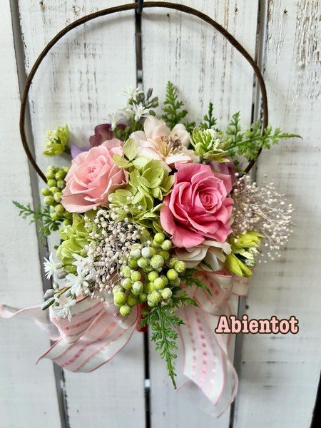今回はミニサイズのブーケを壁掛けにできるデザインです