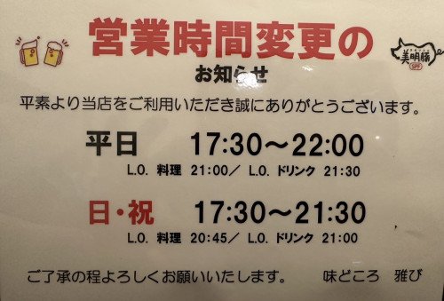 誠に勝手ながら、仕入れ状況などにより通常の営業時間より早く閉店させていただく場合がございます。