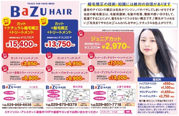 ※すべてシャンプーブロー付き(ジュニアカットはブローのみ)