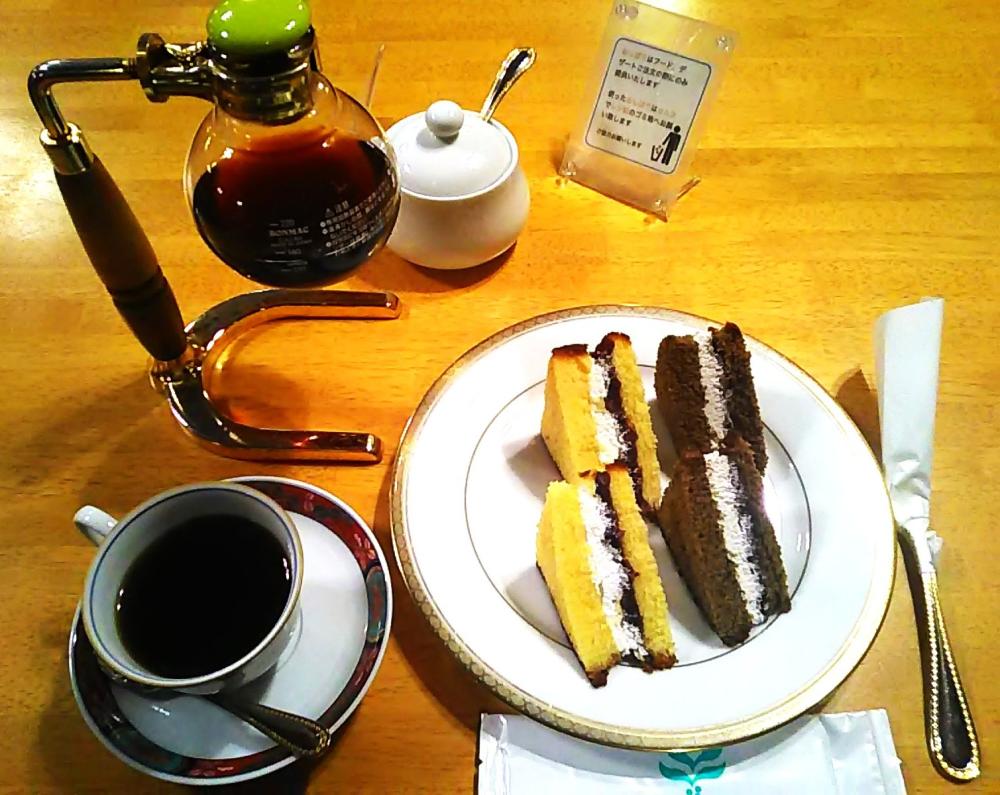 シフォンケーキ(あずき)とヨーロピアンブレンドコーヒーのセットをいただきました。 上品な甘さのシフォンケーキにコーヒーがよくあいます。 サイフォン式のコーヒーは、カップ2杯分あるのもうれしいです。 至福の時間をありがとうございます。