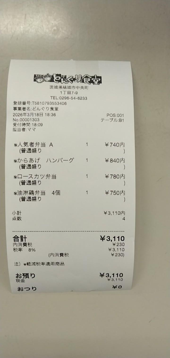 結城市を南北に通る県道17号線(境街道)の作の谷交差点を西に折れ、200m程行った右手(北側)に店を構えている《どんぐり食堂》さんになります。好んで注文する【唐揚げ定食¥500円(税込)】は、ボリューム満点で財布に優しくありがたい、お薦めの逸品です!No.1人気は『特製ロコモコ丼』なんだそうです。さらに、お弁当もいろんなメニューが揃っていて、注文がひとつでも【無料配達】してくれます!