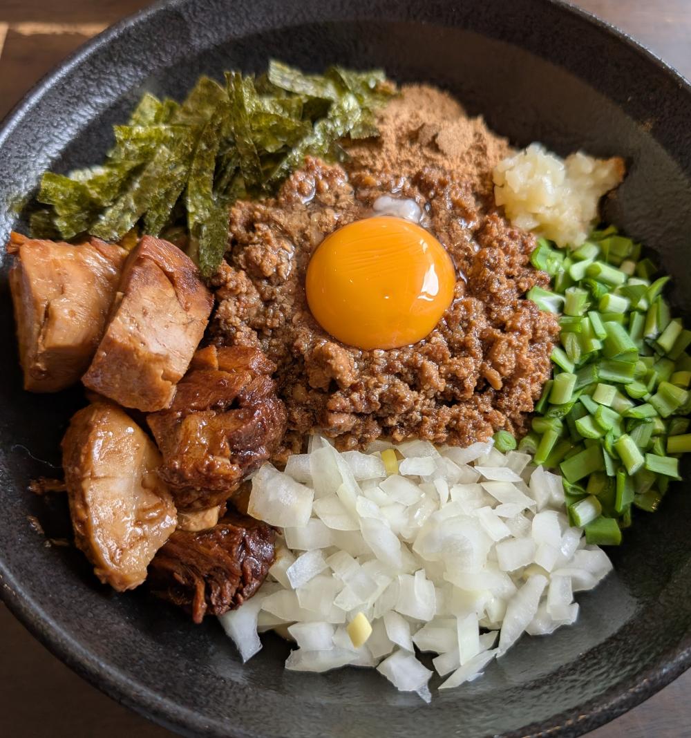 友人から聞いて美味しかったので2回目! 混ぜラーメンは味濃いめ、こってり気味でおいしい!けど、濃いめ苦手のひとは気をつけた方がよいかも。雰囲気も良い人気店。