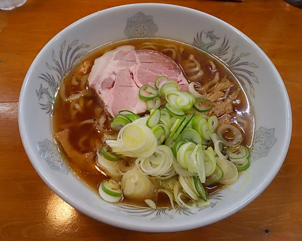 約2年ぶり、今月中旬の平日昼に再訪するとほぼ満席という盛況。初訪時と同様、長渕剛のBGMが間断なく流れ続けています。今回は「手もみらーめん」を長ねぎ増しで注文しました。混み合ったカウンター席に着くと、目の前には「人手不足のため食後の食器類はカウンター上に上げて下さい」と書かれた掲示が・・。15分程で到来した丼には鶏油の浮く醤油ベースの熱々清湯。これにツルモチで太さ不揃いの手もみ太麺が浸っています。麺上の具は約7-8mm厚の豚ロース叉焼1枚、穂先メンマ、それにたっぷりの刻み長ねぎ。シンプルながら鶏の旨味がよく出ている熱々醤油清湯が実に美味しく、今回も完食完飲となりました。
