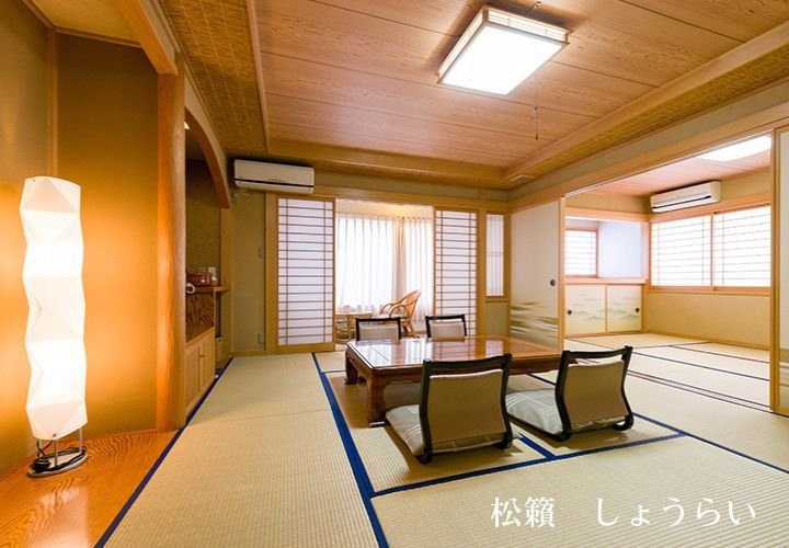 ◇松籟 ご家族やご夫婦、ご友人とのご滞在におすすめの一室です。 定員/2〜7名 広さ/10畳+6畳 設備/トイレ付き ◇松の間 和室 10畳+6畳のゆとりある二間続きで、ご家族やグループでのご利用にも最適。 定員/2〜7名 広さ/10畳+6畳 設備/トイレ無し ◇2階 和室 昔ながらの趣を残した、8畳一間の和室です。 定員/1〜3名 広さ/8畳 設備/トイレ無し ◇椿の間 和室 ご滞在はシンプルに、けれど心はゆったりとお寛ぎいただける一室です。 定員/1〜2名 広さ/7.5畳 設備/トイレ無し