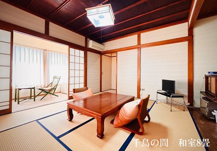 ◇千鳥の間 和室8畳 廊下の奥まった場所にあり、外の喧騒から離れて静かにお過ごしいただけます。 定員/1〜3名 広さ/8畳+広縁 設備/トイレ無し ◇3階 和室 8畳一間の空間は、おひとり様でのご滞在にも最適。 定員/1〜3名 広さ/8畳 設備/トイレ無し 設備:洗面台、テレビ、冷蔵庫、エアコン、ドライヤー アメニティ:浴衣、フェイスタオル、バスタオル、歯ブラシ お煙草:渚光・汐音・松籟は禁煙。他の客室は喫煙可の部屋となります。