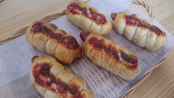 ◆ウインナーぱん ⚪全粒粉入りの生地が香ばしくもっちりとした食感で、子供から大人まで人気の定番ぱんです。