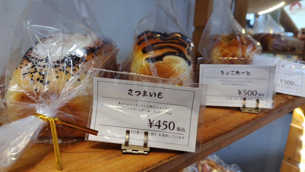 昔、「バナナマンのせっかくグルメ」で紹介されたパン屋さんです。その時は、「シルクタッチ」という食パンが紹介されました。 今回訪問して購入したのは、「パンプキンブレッド」と「スイートポテトデニッシュ」です。 パンプキンブレッドは、かぼちゃを練り込んだ生地に、かぼちゃ餡とダイスカットされたさつまいもを入れて焼き上げたパンです。表面にはかぼちゃの種もありました。 スイートポテトデニッシュは、見たとおり、ペースト状のさつまいもと紫いもがのっていますが、その下にはカスタードクリームがありました。 どちらもおいしかったです。(各250円)