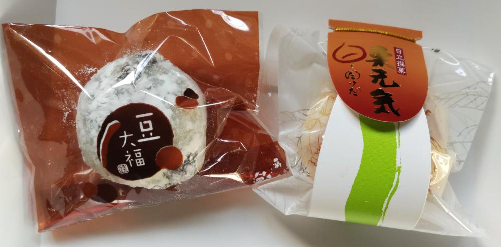 「豆大福」と「栗元気」を購入しました。 豆大福の中は粒あんで、ほどよい大きさ。お値段も130円とお手頃です。 栗元気は、渋皮栗1粒と白あんをパイ生地で包み焼き上げた商品で、1個200円。 おいしくいただきました。