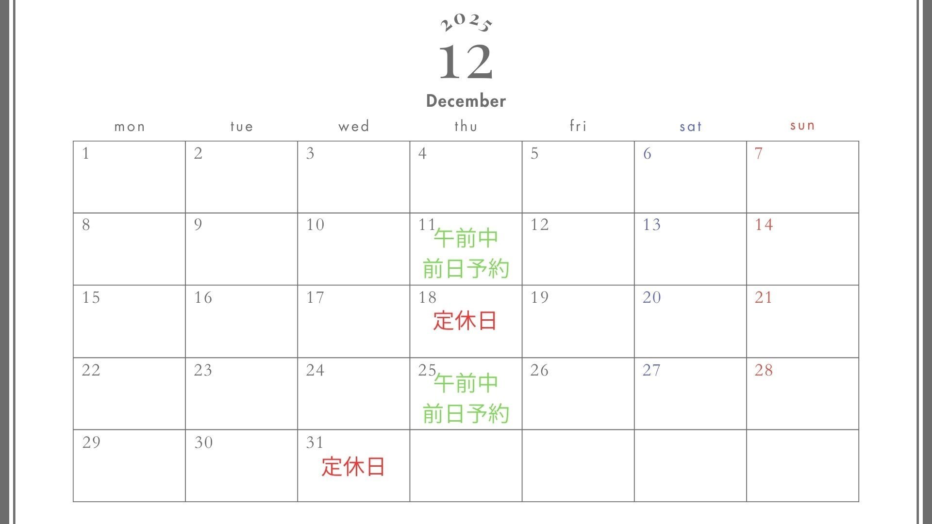 毎週木曜日は午前中を前日までのご予約で受け付けています。